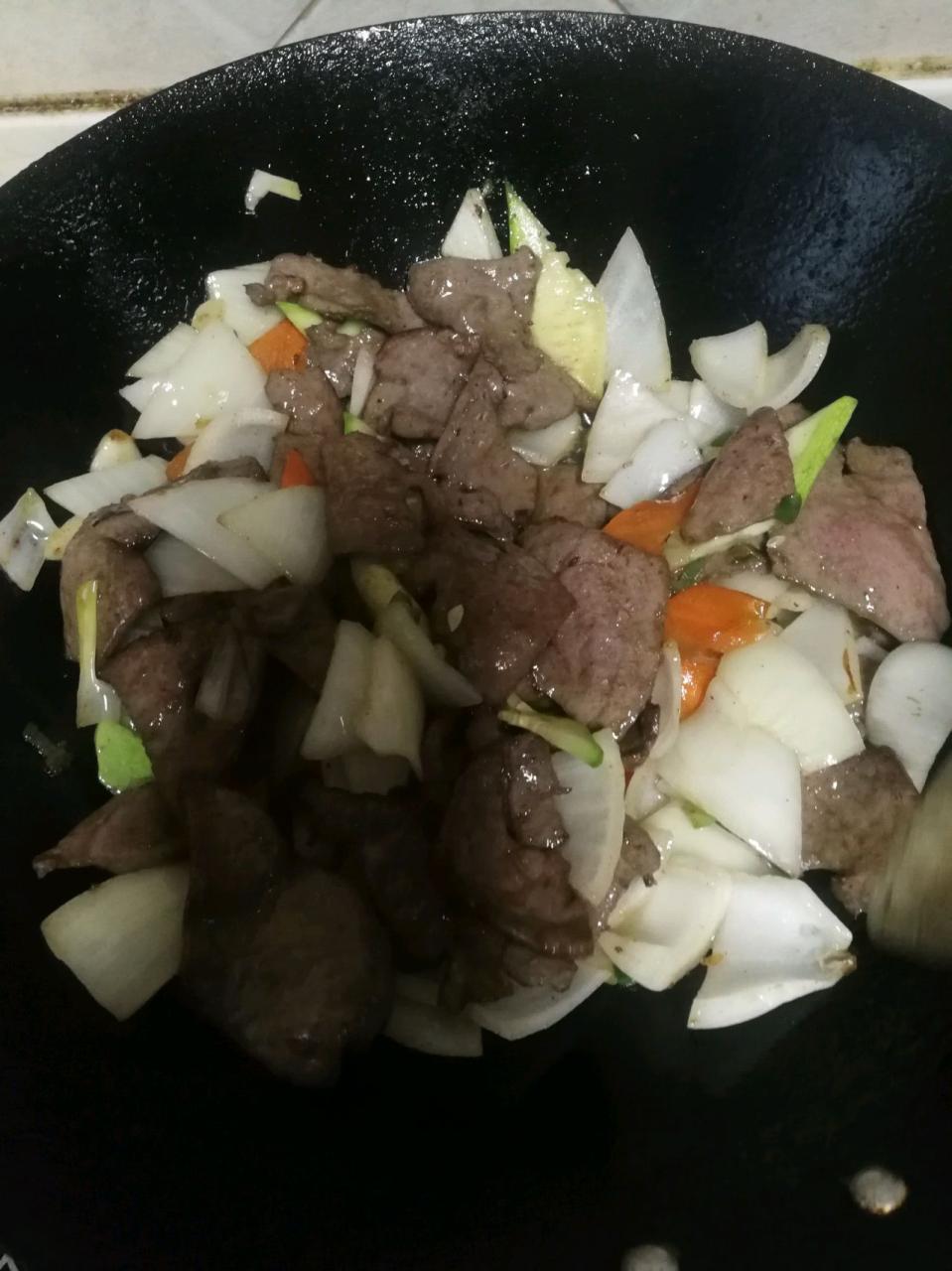 鍋に油を熱し、油の温度が少し高くなるまで煮たレバーを加え、ほぐすまで注ぎます。