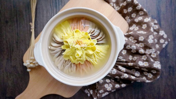 次に、残った卵の皮を使って牡丹の花のような形を作り、その上に置きます。ここで爪楊枝を使って一時的に固定します。 。 。牡丹の作り方も分からない〜めちゃくちゃです。 。でも効果はまあまあです~おしべは牛腸の細切りを数枚使いました~蒸し器にかける前のプルメリアの方がまだ綺麗ですね~
