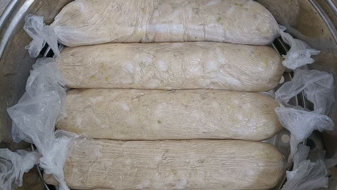 10ポンドの肉を用意し、5ポンドの赤身の肉をミートフィリングに混ぜ、5ポンドの脂肪の肉を薄く切り、それぞれを半日水に浸し、途中で水を2〜3回交換します。水分を濾しやすいように白いガーゼで包みます。 肉が白くなるまで浸したらほぼ完成です。