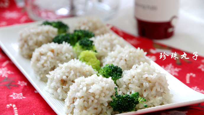 美味しい真珠つくね、外はもち米、中は柔らかくて美味しい、年齢問わず、大人も子供も大好きです。茹でたブロッコリーを熱湯に入れると見た目も美しくなり、ミートボールを食べるときに子供たちもブロッコリーを食べます。