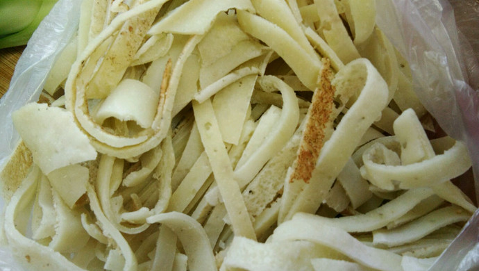 私は生の細切り豆を購入しましたが、長期保存可能な乾燥細切り豆もあるので、乾燥した細切り豆を食べたい場合は、取り出して水に浸してから揚げてください。