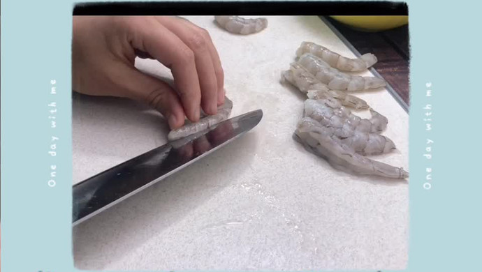 エビの頭と殻を取り除き、エビの糸を取り除き、エビを2匹残して、玉ねぎをみじん切りにします。