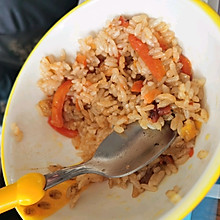 あらかじめ作っておいたエビスープを加えて中火にし、蓋をしてエビスープが完全に吸収されるまで煮ます。