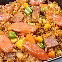 電気パンのスイッチを入れ、熱くなったら油を塗り、肉、玉ねぎ、エリンギを加えます。閉めてもいいですし、このように直接焼いてもいいです。肉の色が変わったら裏返します。肉が焼けたら、クミンヌードルを散らして盛り付けます。特に肉は柔らかく、エリンギを焼くときは電気パンを閉じた方が早いです。そして数秒間閉じます。