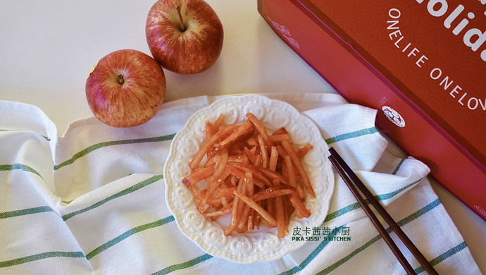 韓国のおかずのリンゴのピクルスと大根の千切りの調理のヒント