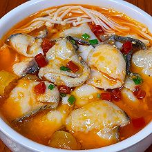魚の切り身のトマト煮と酸味のあるスープ
