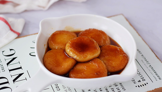 強火にして汁を減らし、もち1個1個にシロップがかかるようにしたら火を止めてお召し上がりください。